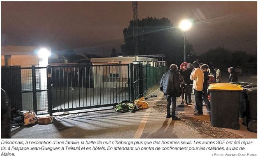 Même hébergés les sans abris vivent des conditions difficiles. Josué Jean-Bart publie un article sur le sujet dans l’édition du 24 mars de Ouest-France.
